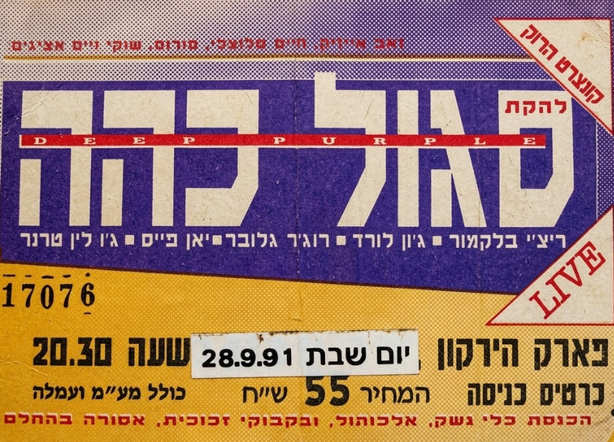 1991: להקת דיפ פרפל מופיעה בפארק הירקון בתל אביב.